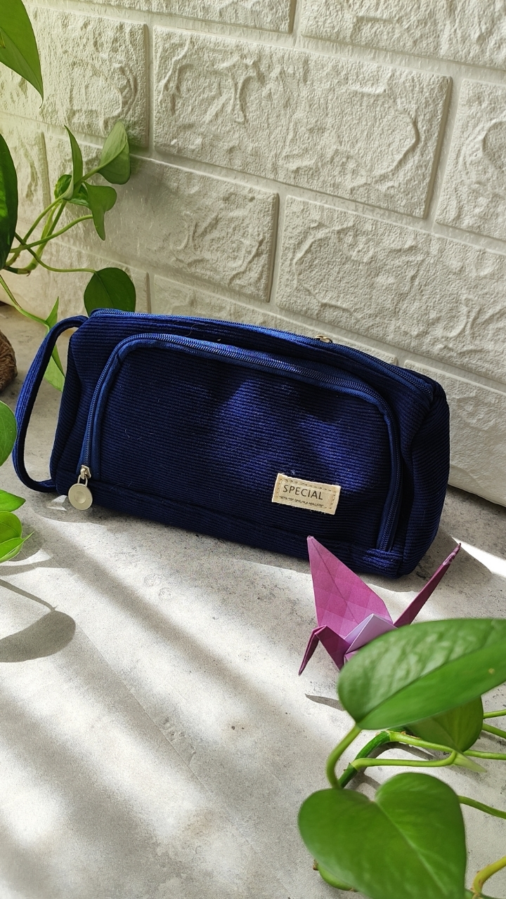 این جامدادی پارچهای مینیمال مخصوص اوناییه که هم دنبال سادگیان هم جادار بودن 🖤🤍💙