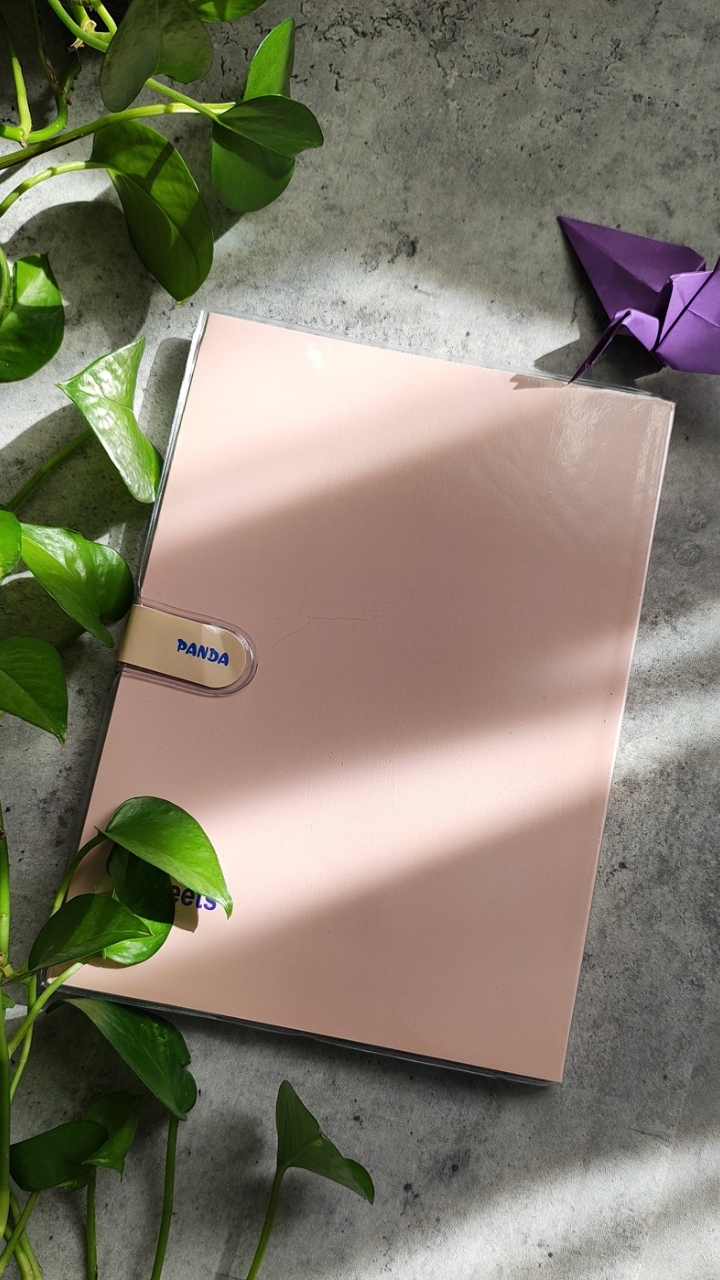 یک دفتر با طراحی مینیمال و جذابه که جلدش از جنس مقوای نرم و مقاوم ساخته شده و لمینت شده تا از آسیب دیدن جلوگیری کنه ته دوخته با دوخت بسیار با کیفیت که از صحافی جدا نمیشه