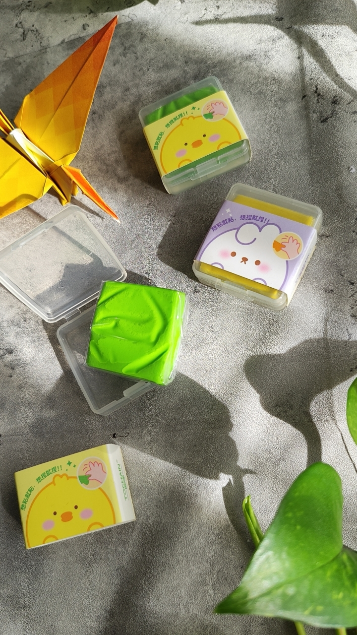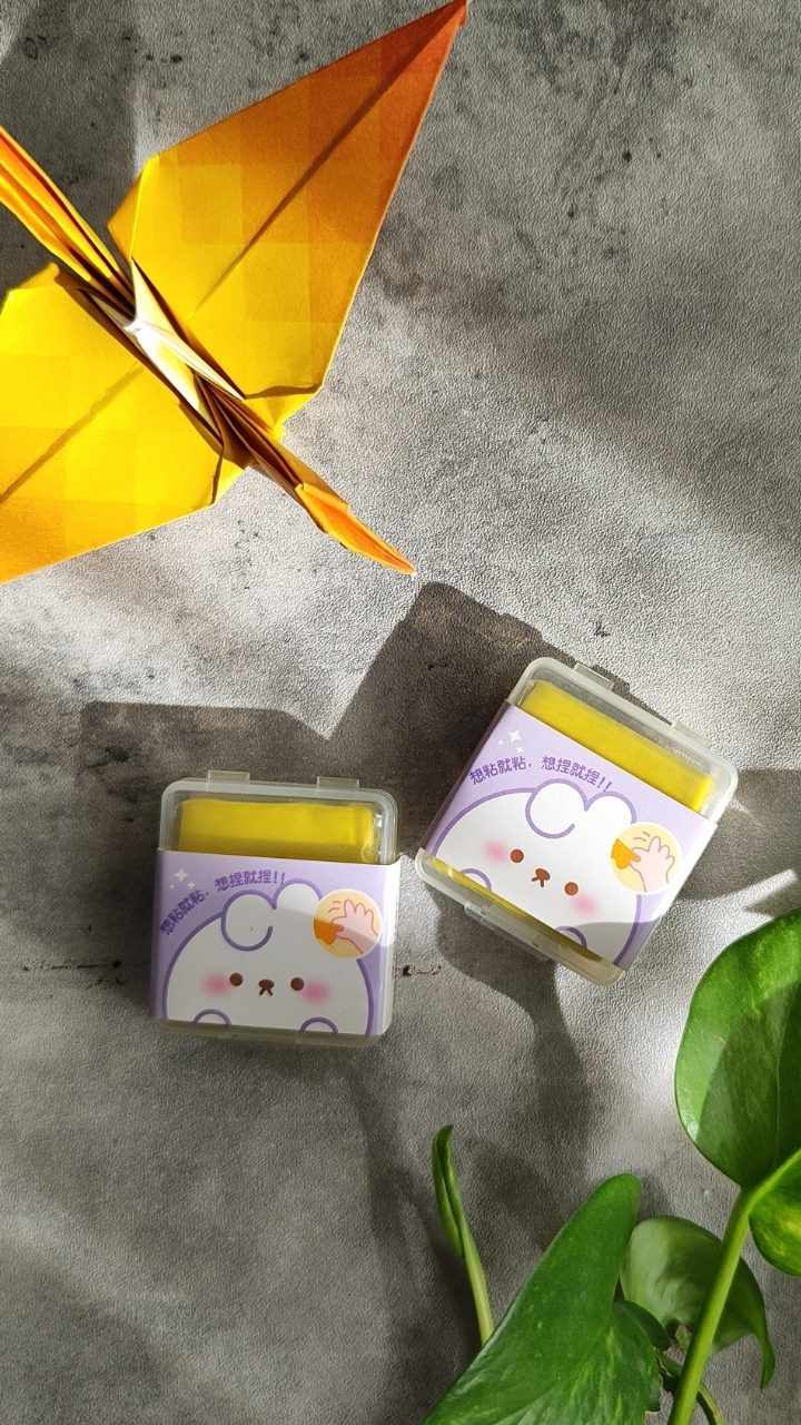 پاککن خمیری با رنگهای جذاب سبز و زرد، ابزاری حرفهای و کاربردی برای پاک کردن دقیق و تمیز اشتباهات نوشتاری و طراحیهای هنریه.