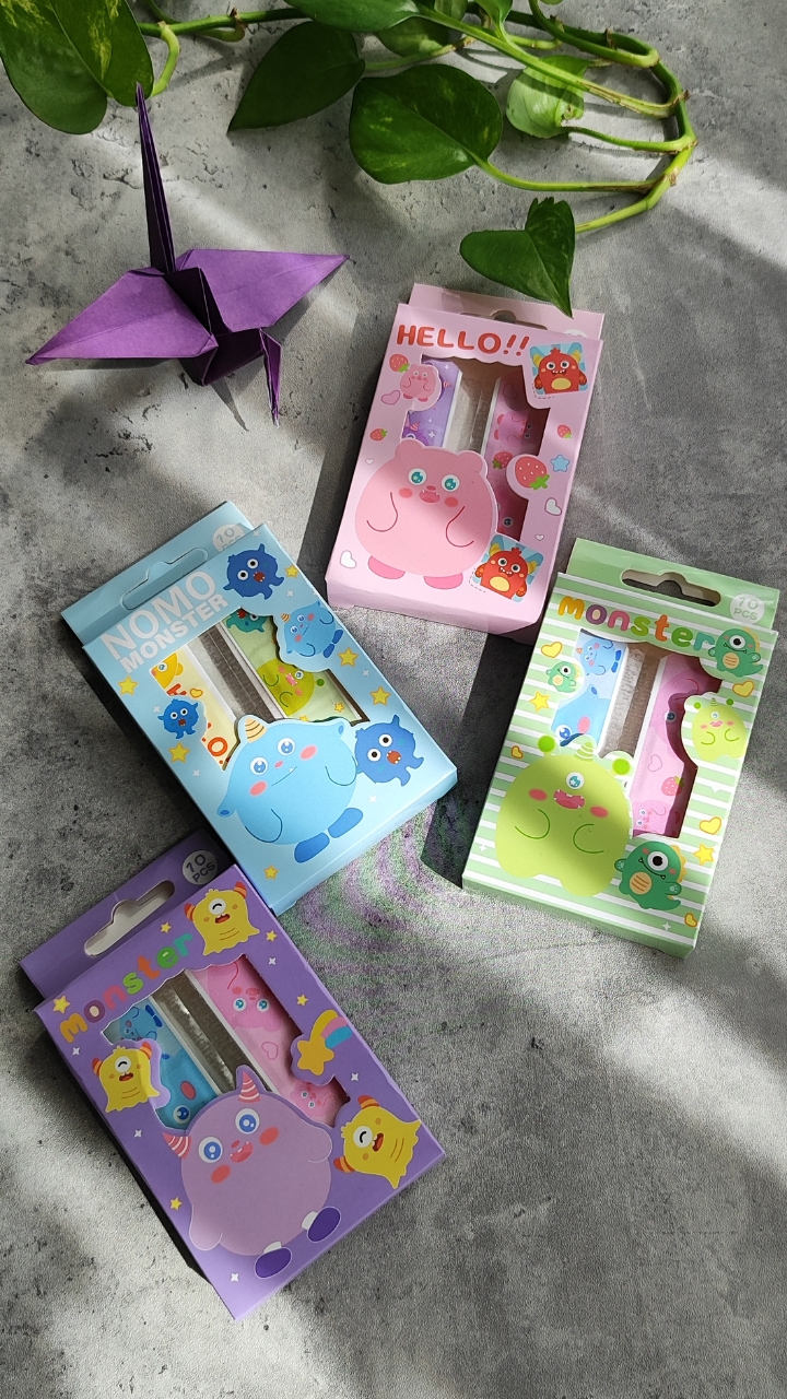 رنگ جعبهها: سبز، آبی، صورتی و یاسی ، همهشون با طرحهای فانتزی هیولایی که دل هر کسی رو میبره!