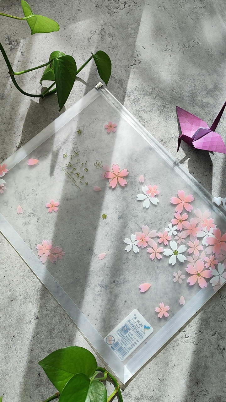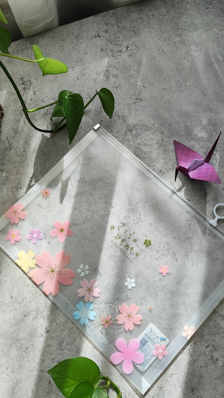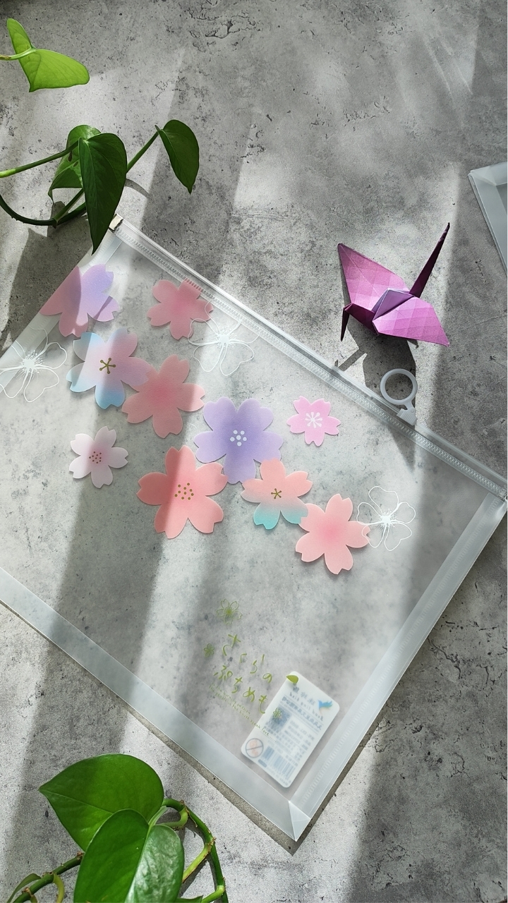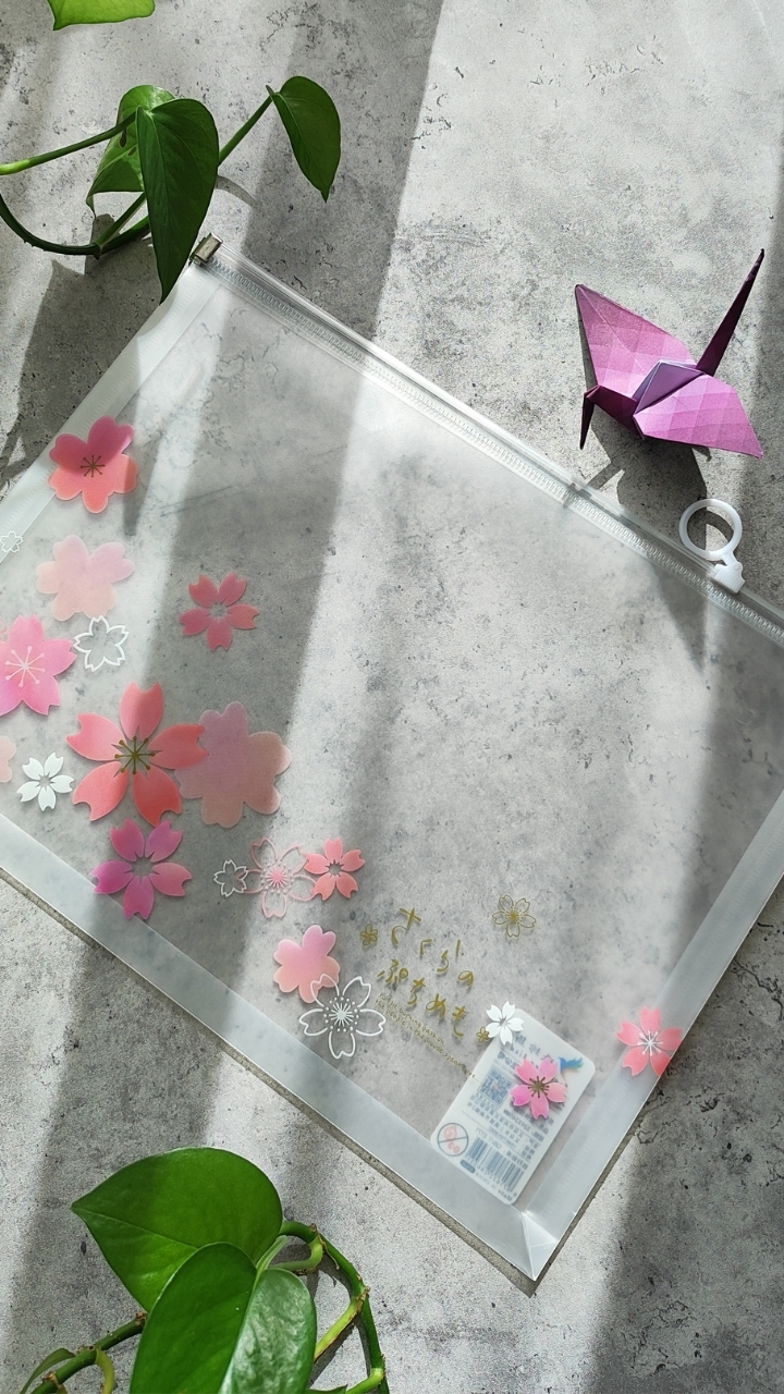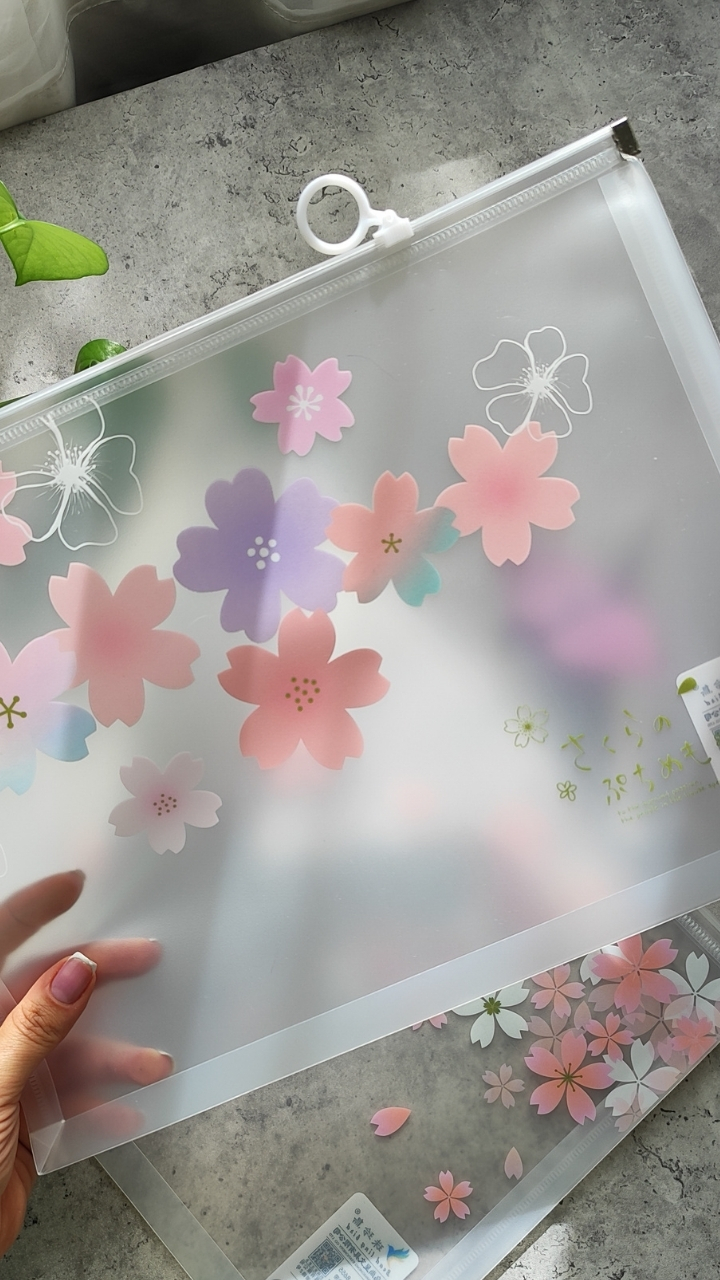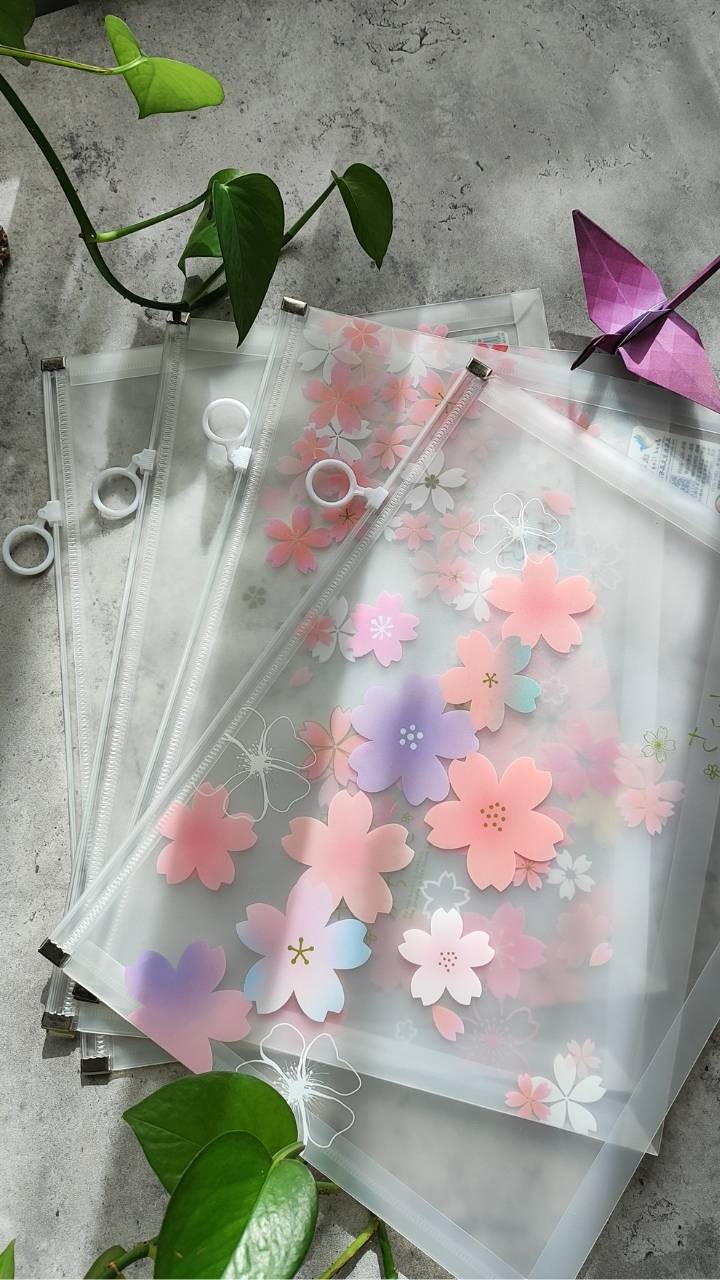 کاور زیپی شفاف با طرح شکوفههای صورتی، خوشگل و کاربردی برای نظم دادن ونگهداری برگهها و خردهریزها
